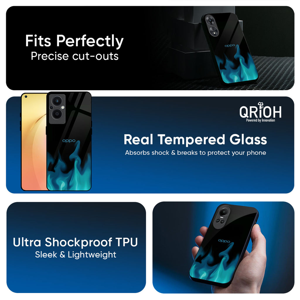 Teal Flames Glass Case for Oppo K13 5G