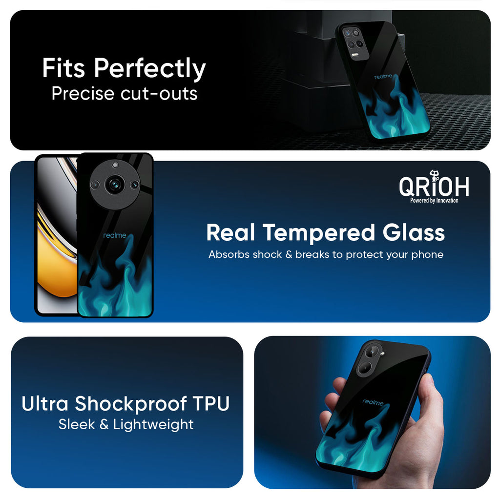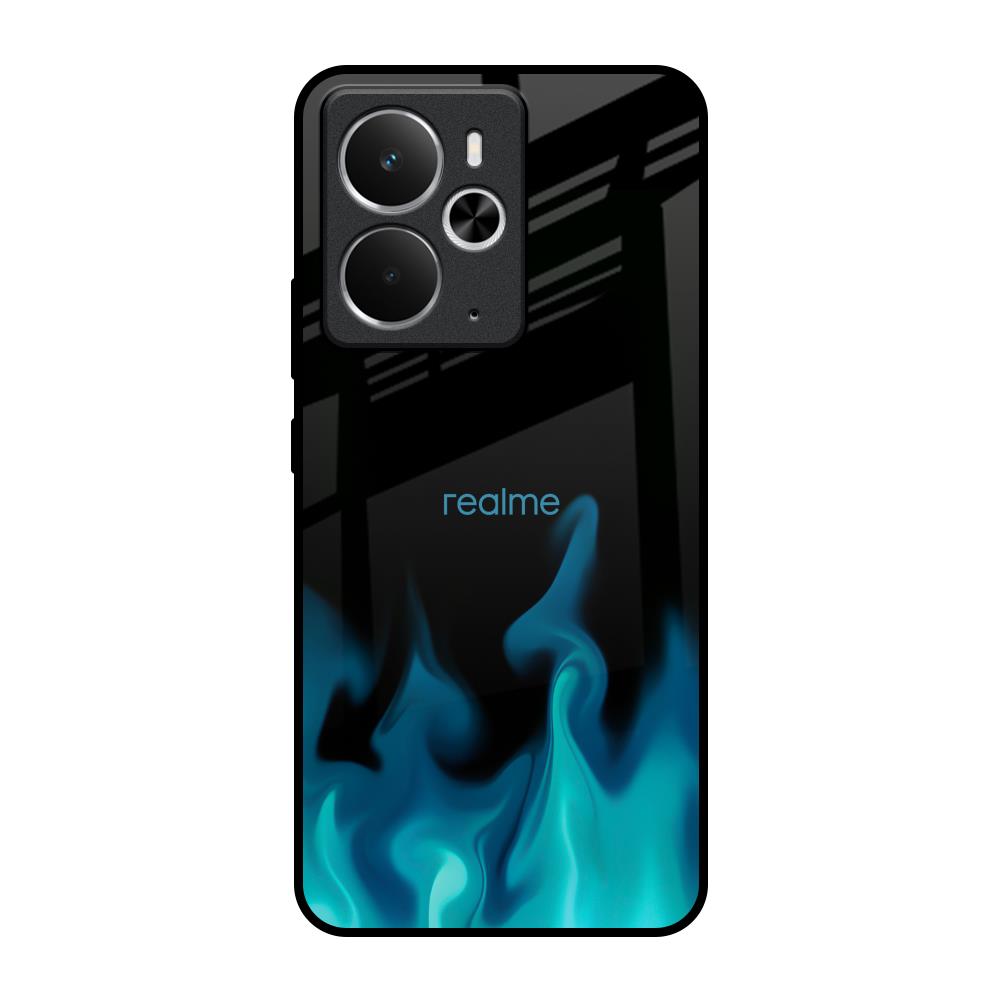 Teal Flames Glass Case for Realme 14 5G