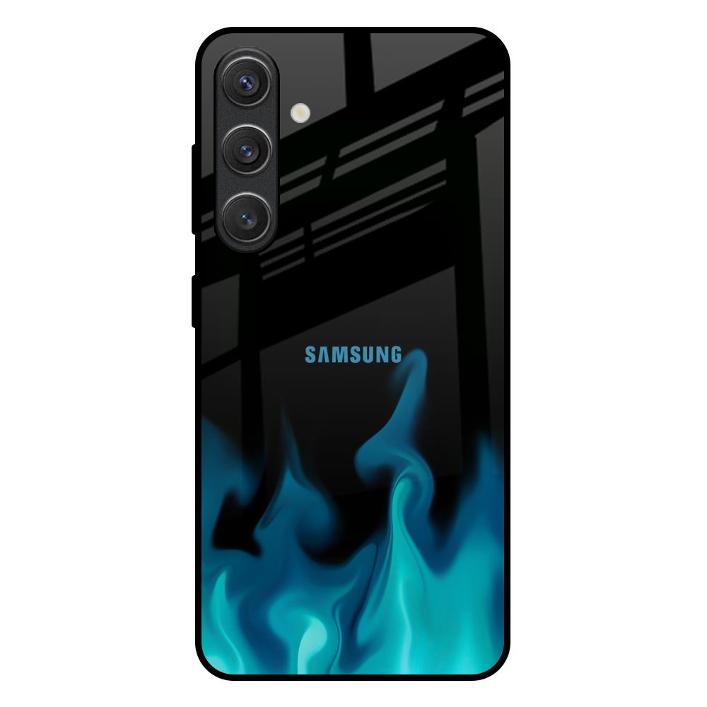 Teal Flames Glass Case for Samsung Galaxy S25 Plus 5G