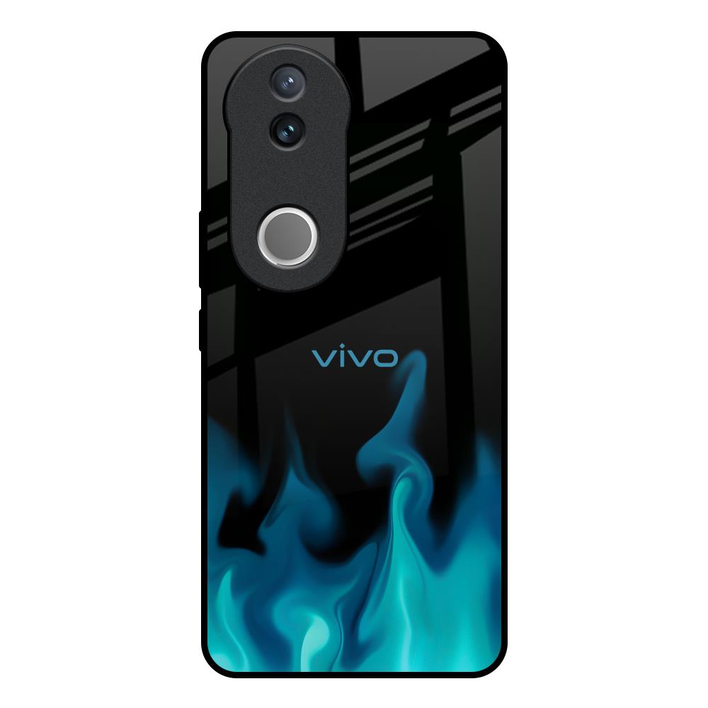 Teal Flames Glass Case for Vivo V50 5G