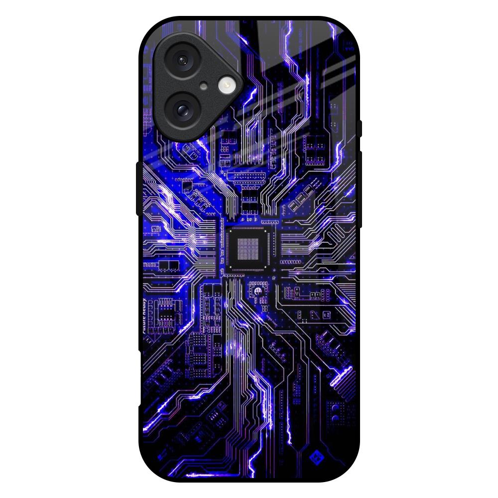 Techno Color Pattern Glass Case For iPhone 16 Plus