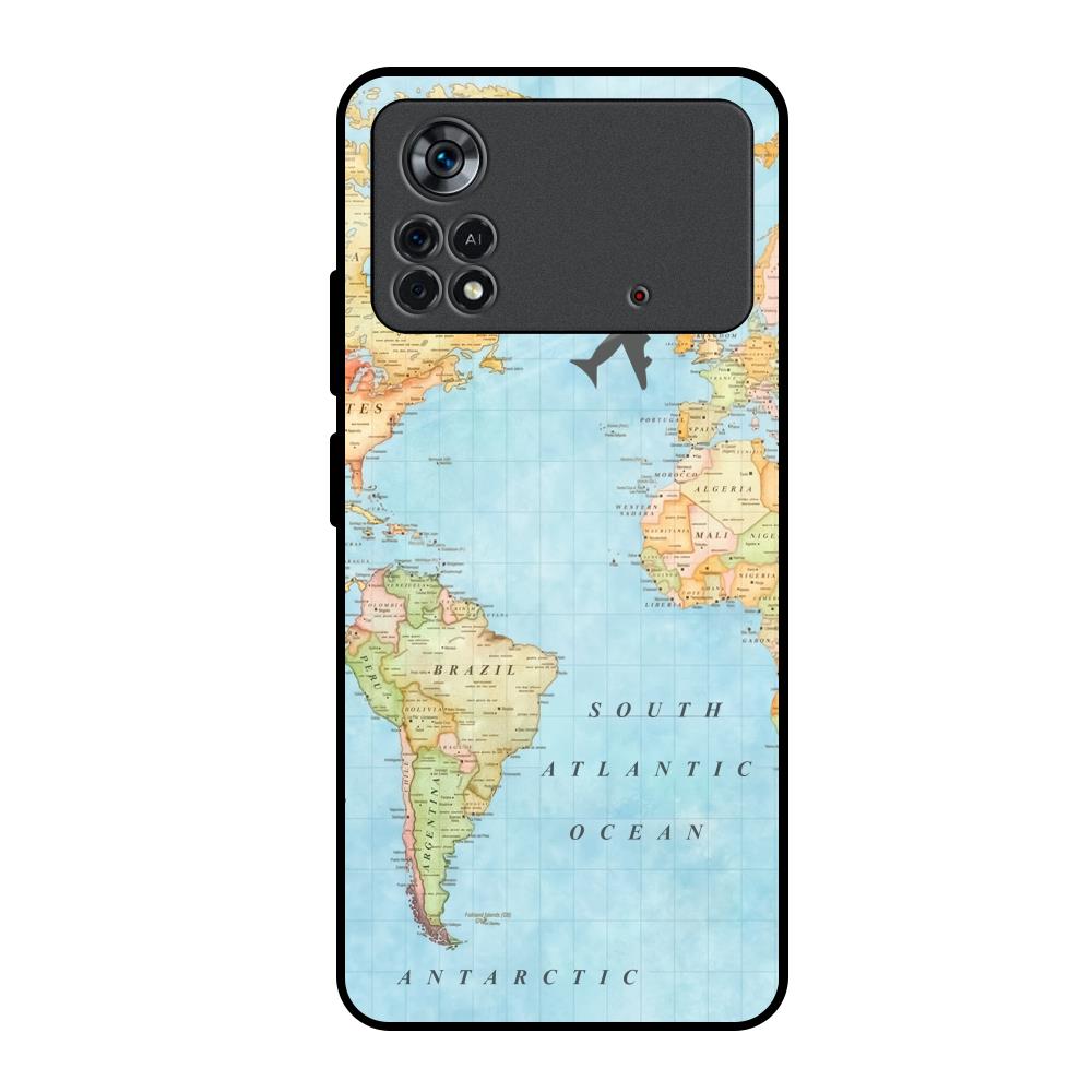 Travel Map Glass Case for Poco X4 Pro 5G