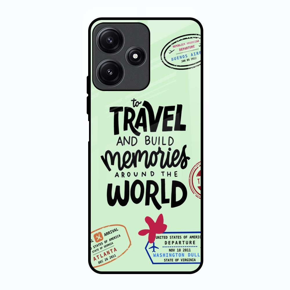 Travel Stamps Glass Case for Poco M6 Pro 5G
