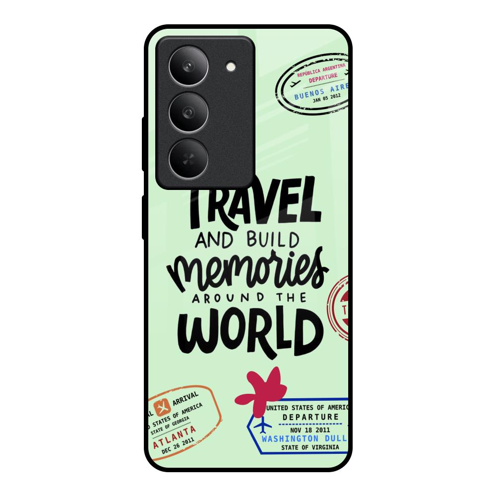 Travel Stamps Glass Case for Realme 14x 5G