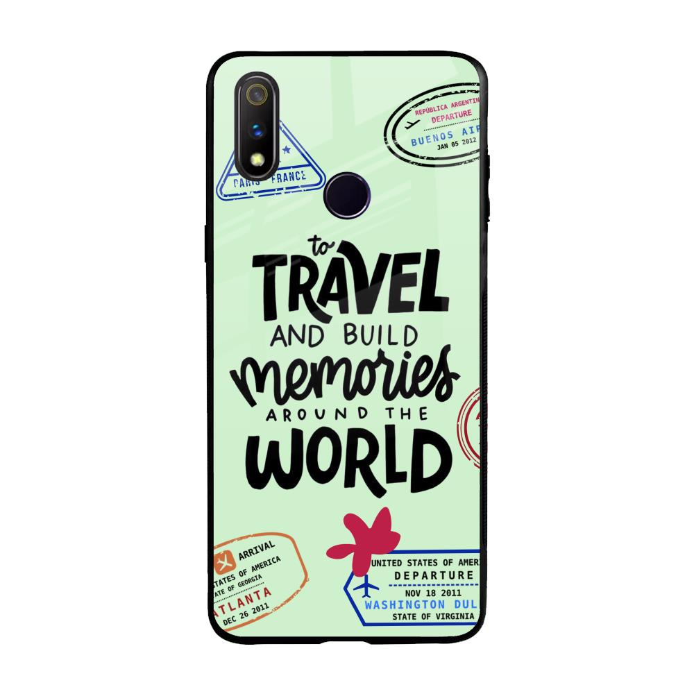 Travel Stamps Glass Case for Realme 3 Pro