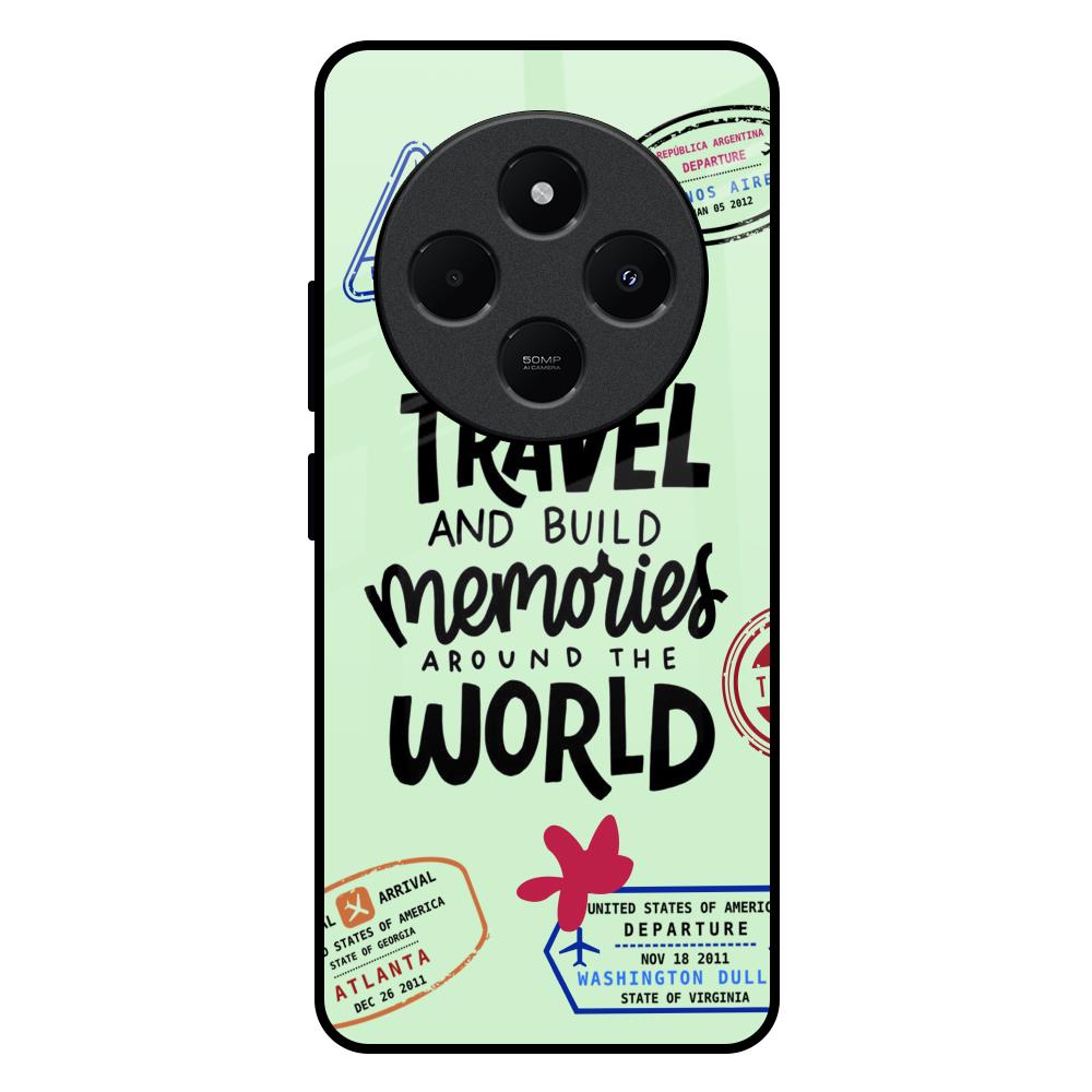 Travel Stamps Glass Case for Redmi 14C 5G