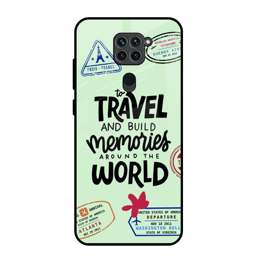 Travel Stamps Glass Case for Redmi Note 9