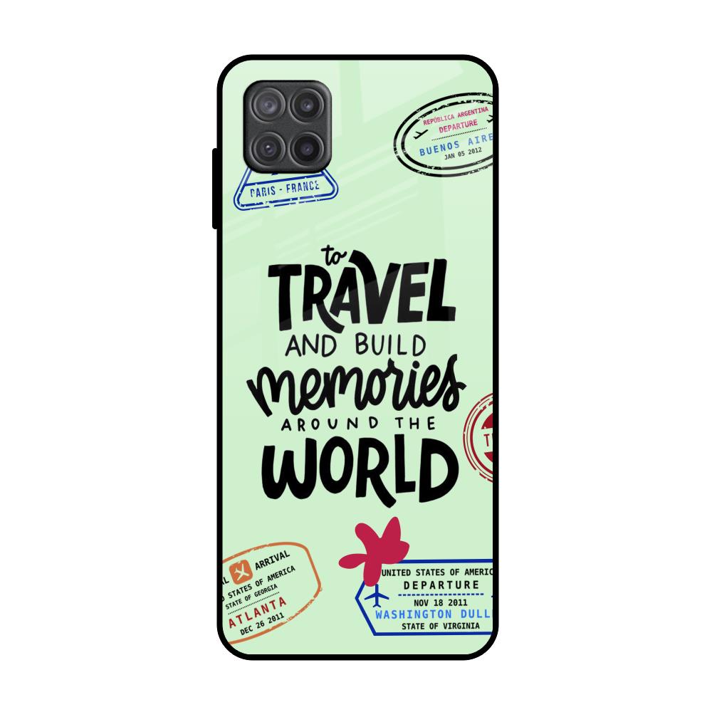 Travel Stamps Glass Case for Samsung Galaxy A12