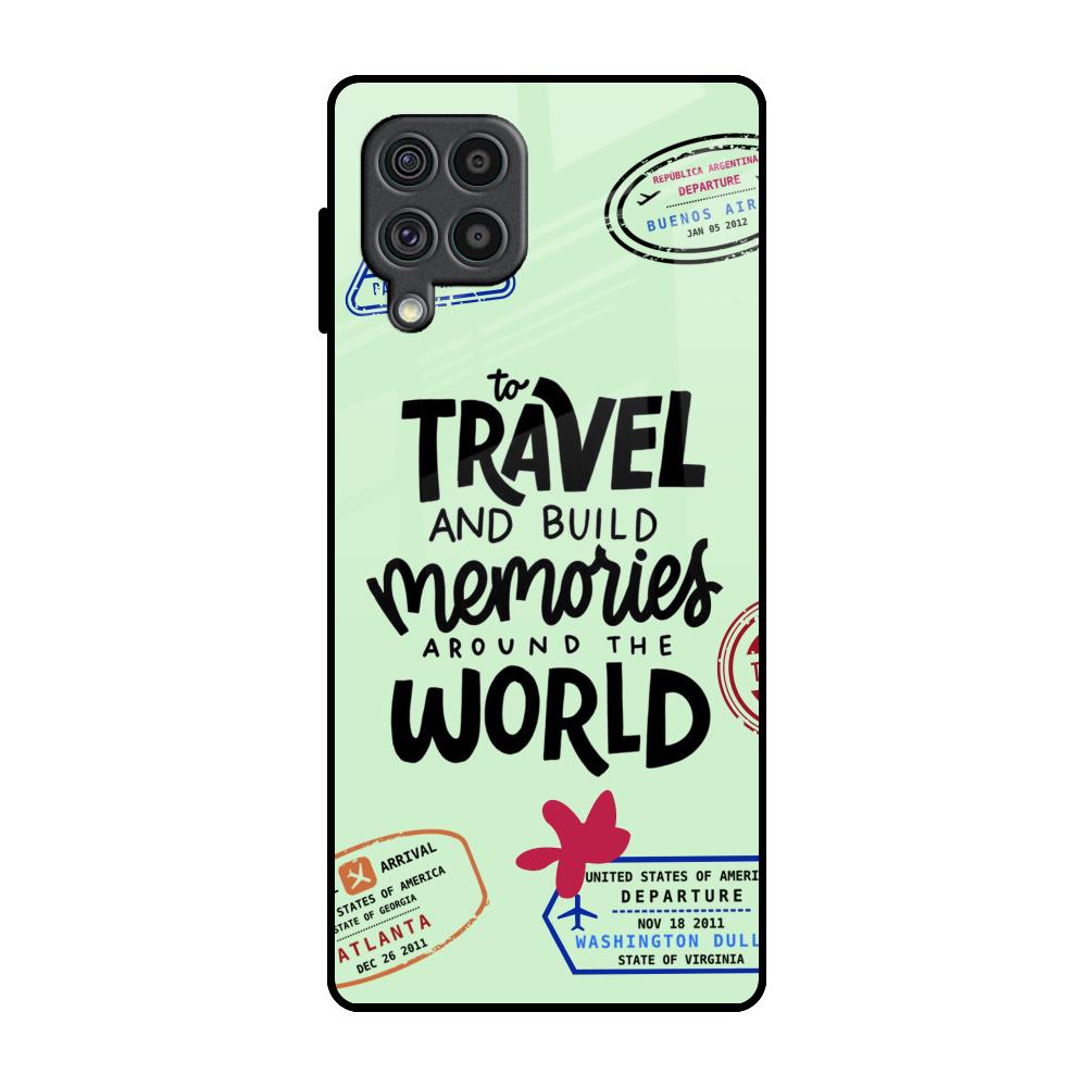 Travel Stamps Glass Case for Samsung Galaxy F62