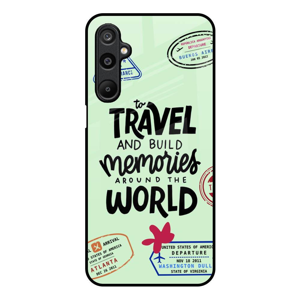 Travel Stamps Glass Case for Samsung Galaxy M16 5G