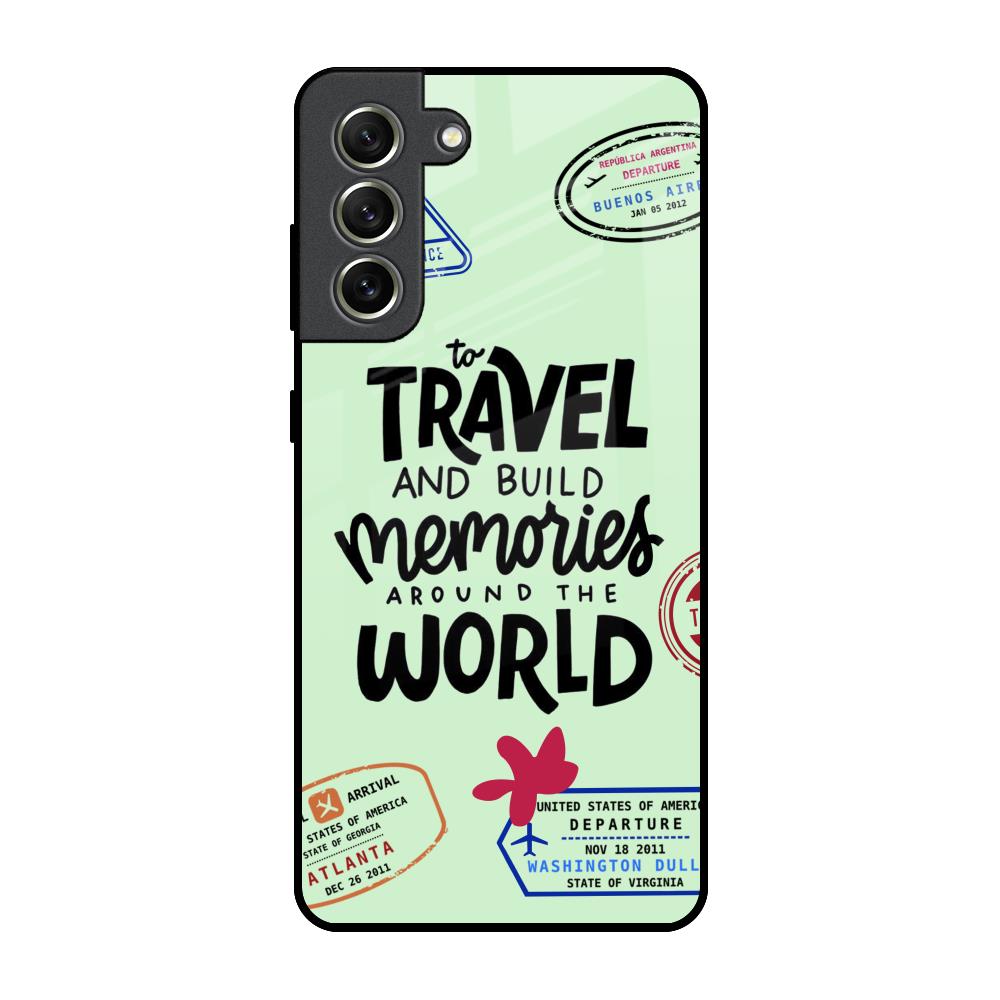 Travel Stamps Glass Case for Samsung Galaxy S21 FE 5G