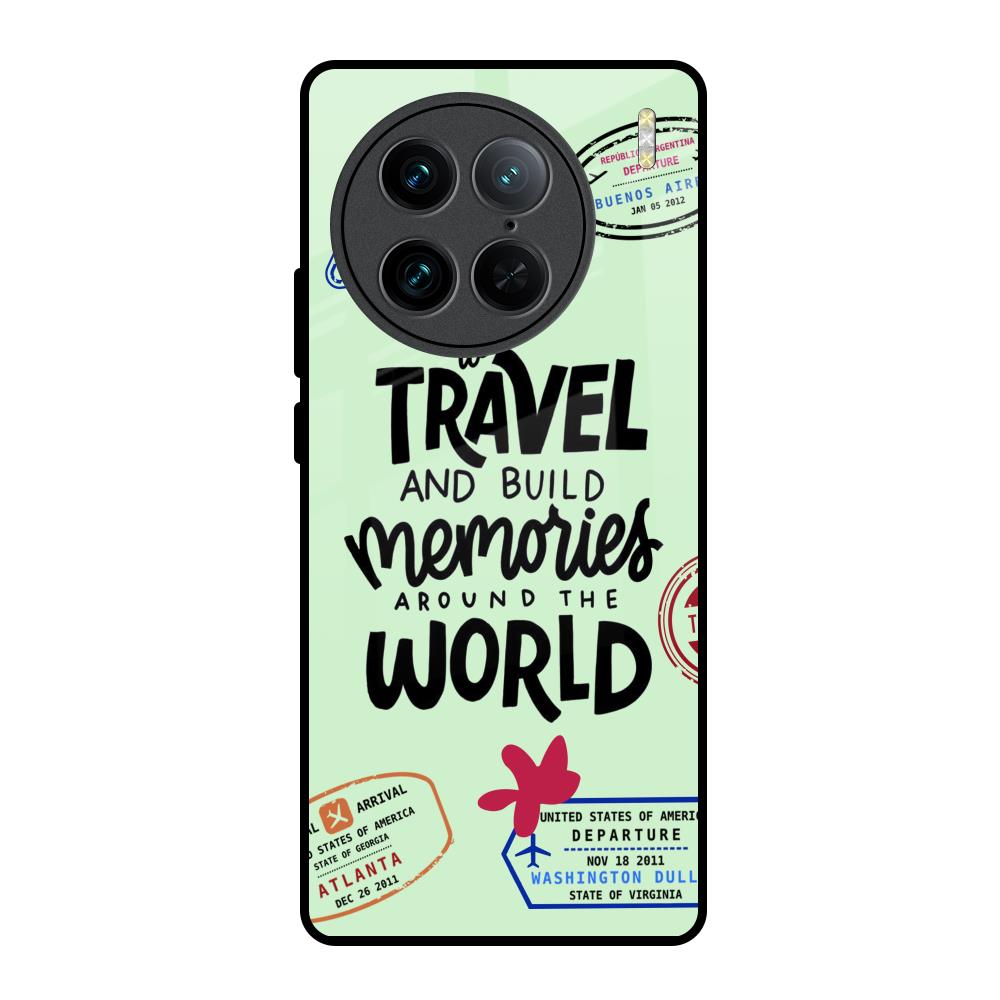 Travel Stamps Glass Case for Vivo X90 Pro 5G
