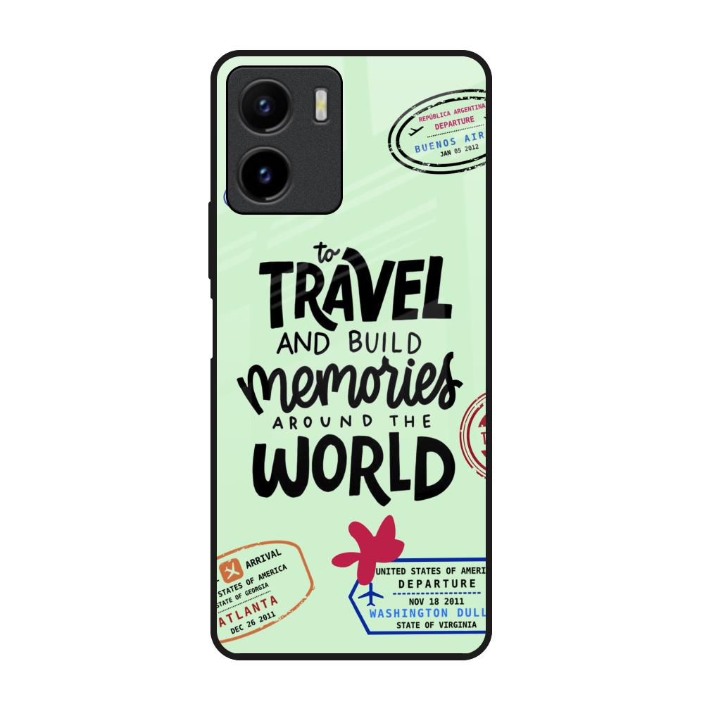 Travel Stamps Glass Case for Vivo Y15s