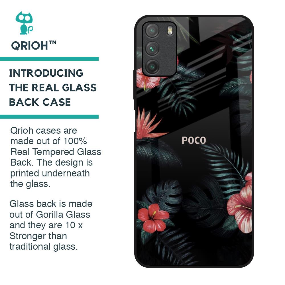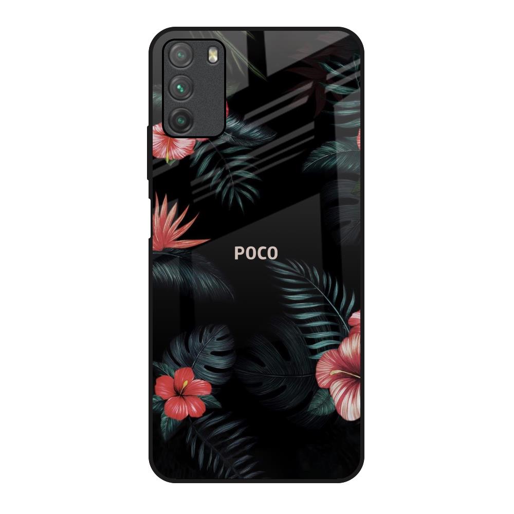 Tropical Art Flower Glass Case for Poco M3