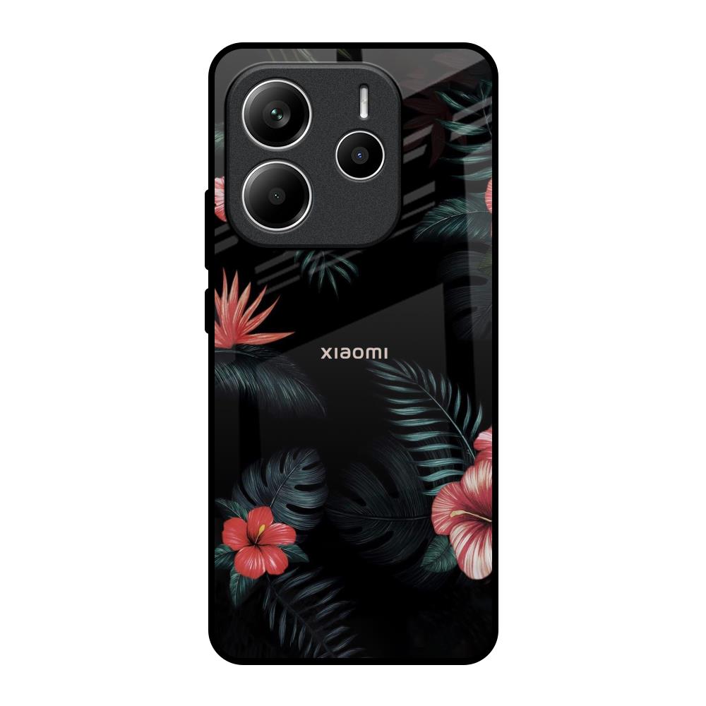 Tropical Art Flower Glass Case for Redmi Note 14 5G