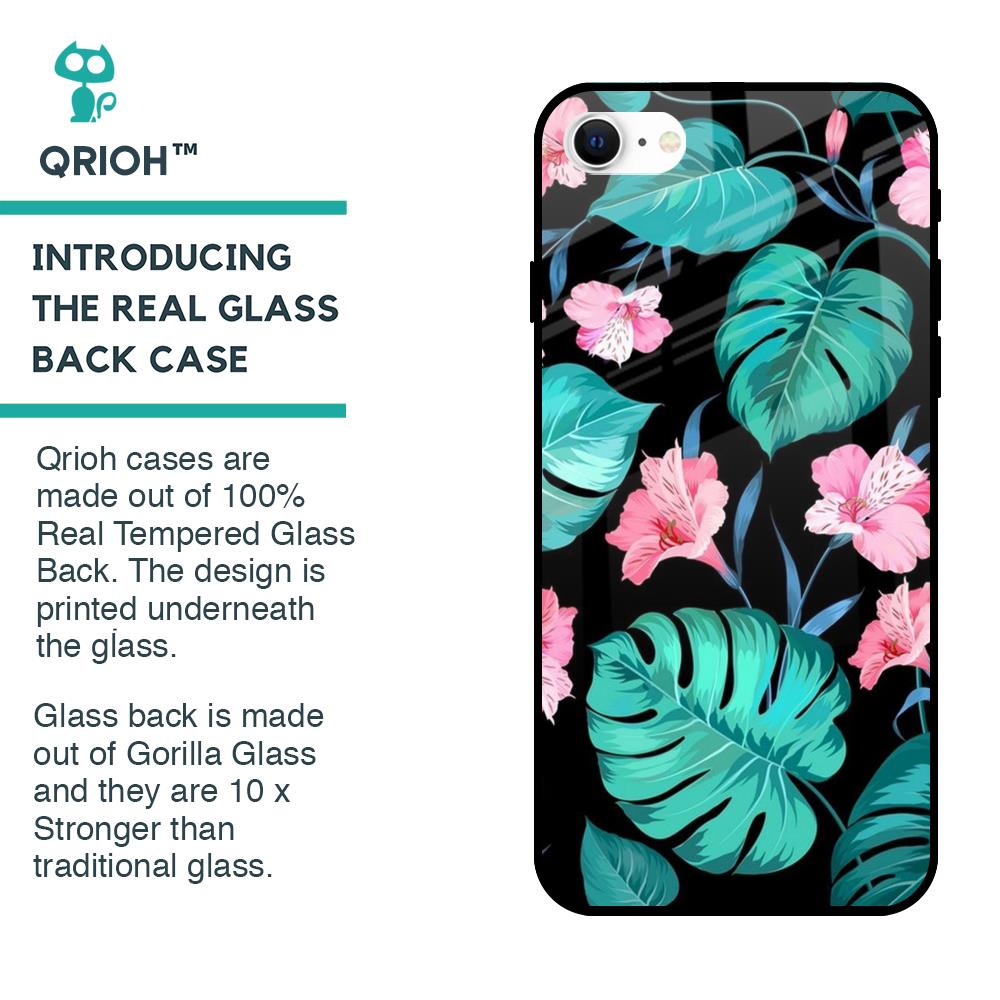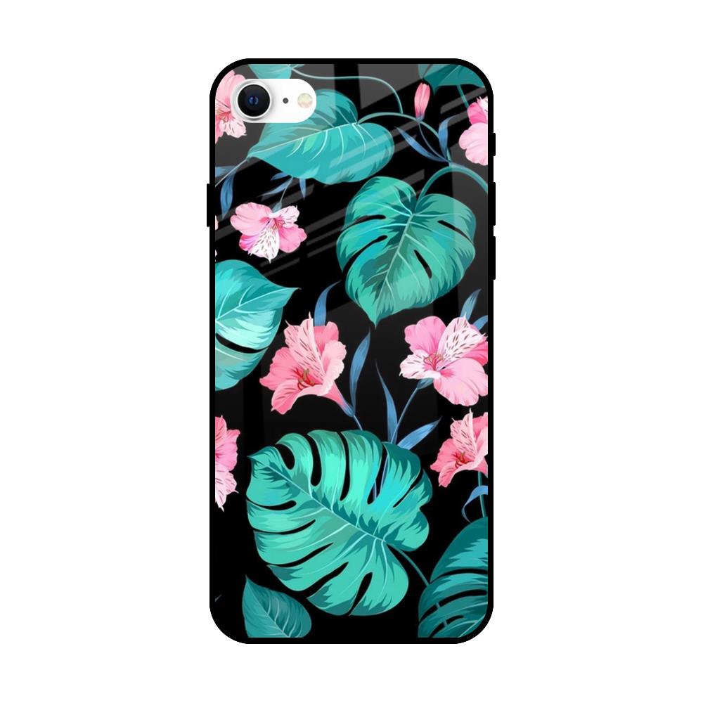 Tropical Leaves & Pink Flowers Glass case for iPhone SE 2022