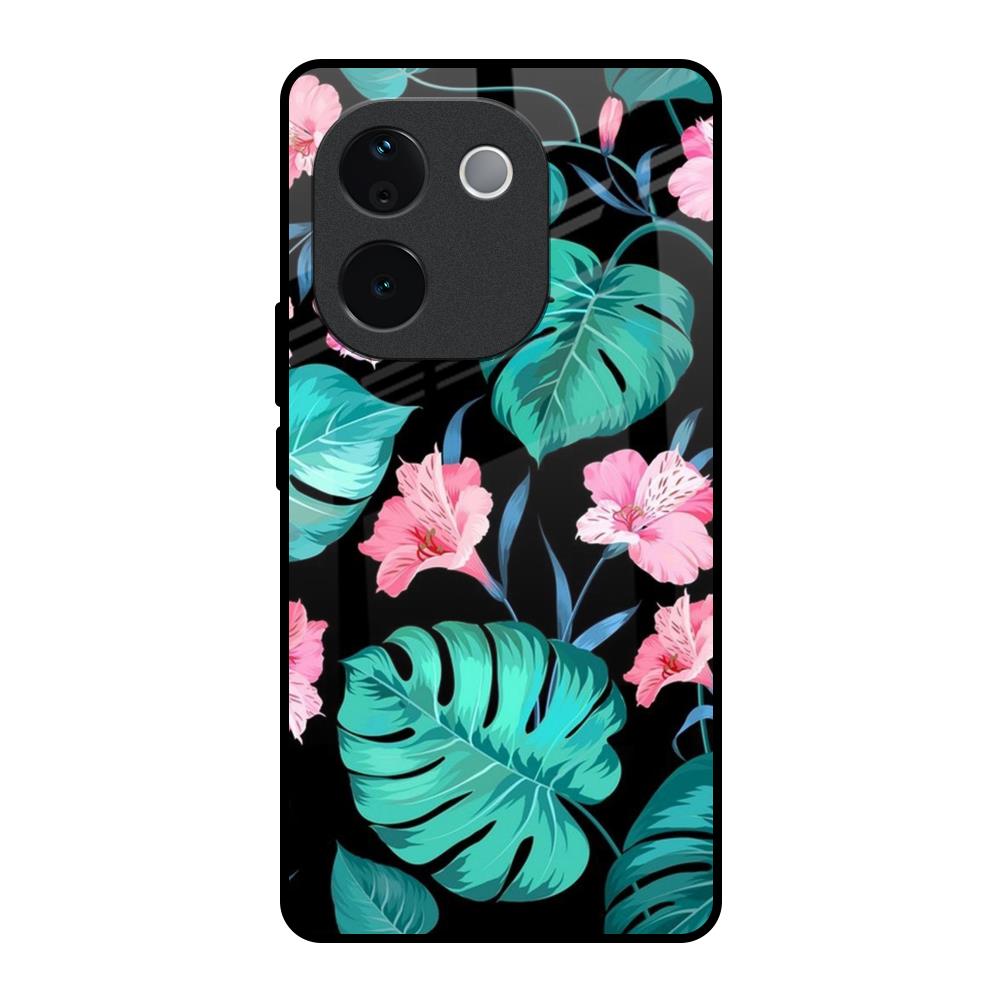 Tropical Leaves & Pink Flowers Glass Case for IQOO Z9s Pro 5G