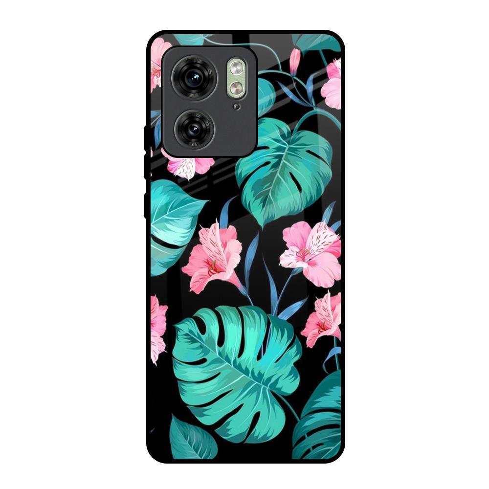 Tropical Leaves & Pink Flowers Glass Case for Motorola Edge 40