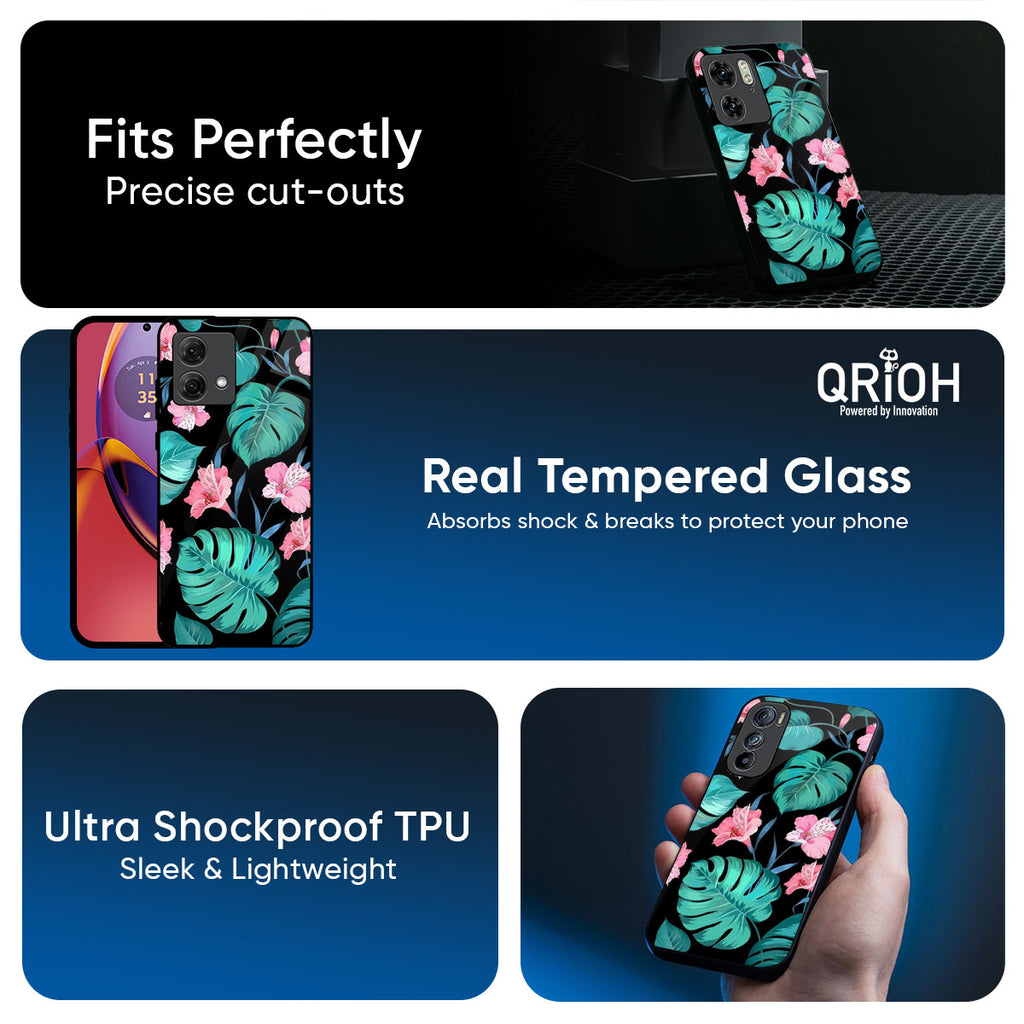 Tropical Leaves & Pink Flowers Glass Case for Motorola Edge 60 Fusion 5G