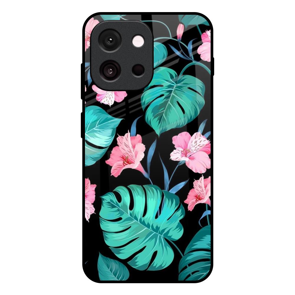 Tropical Leaves & Pink Flowers Glass Case for OnePlus 13s 5G