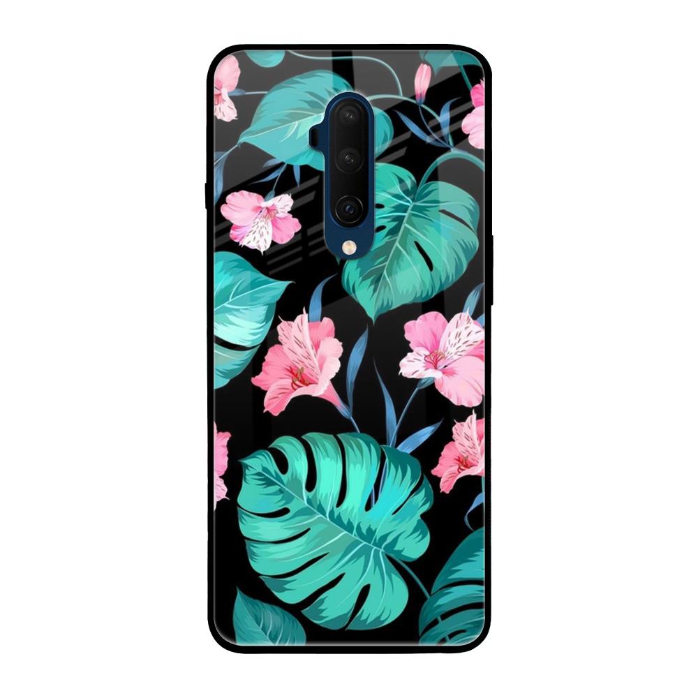 Tropical Leaves & Pink Flowers Glass case for OnePlus 7T Pro