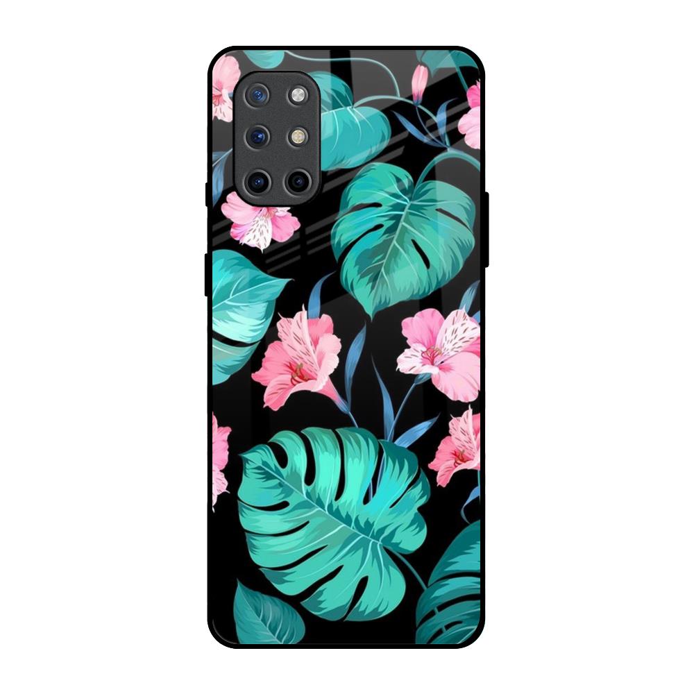 Tropical Leaves & Pink Flowers Glass Case for OnePlus 8T