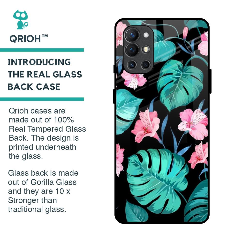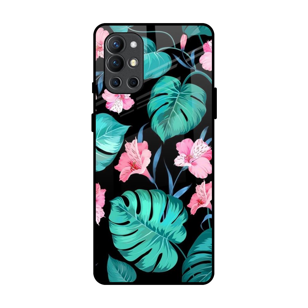 Tropical Leaves & Pink Flowers Glass Case for OnePlus 9R