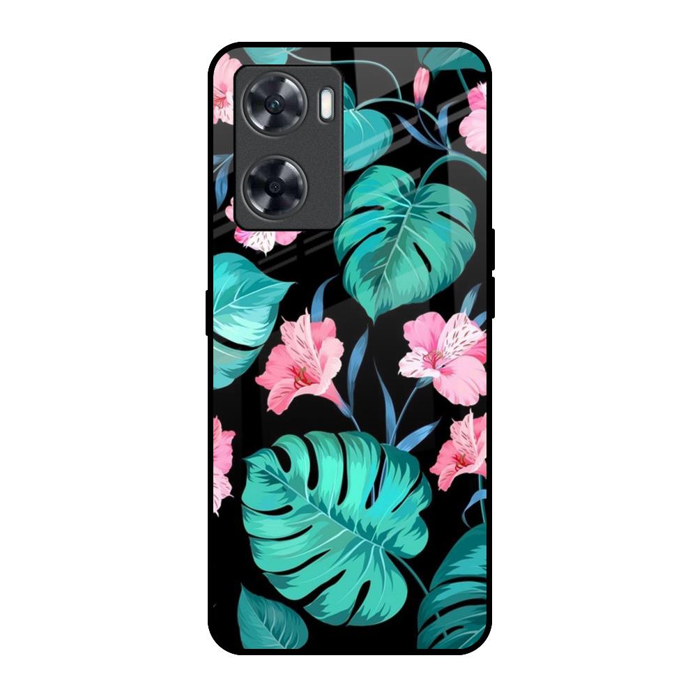 Tropical Leaves & Pink Flowers Glass Case for OnePlus Nord N20 SE