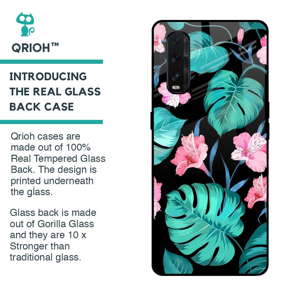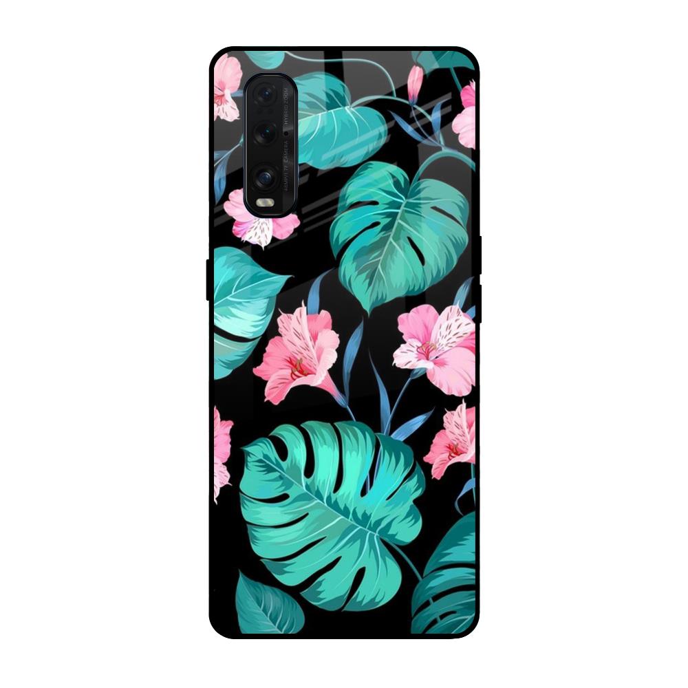 Tropical Leaves & Pink Flowers Glass case for Oppo Find X2