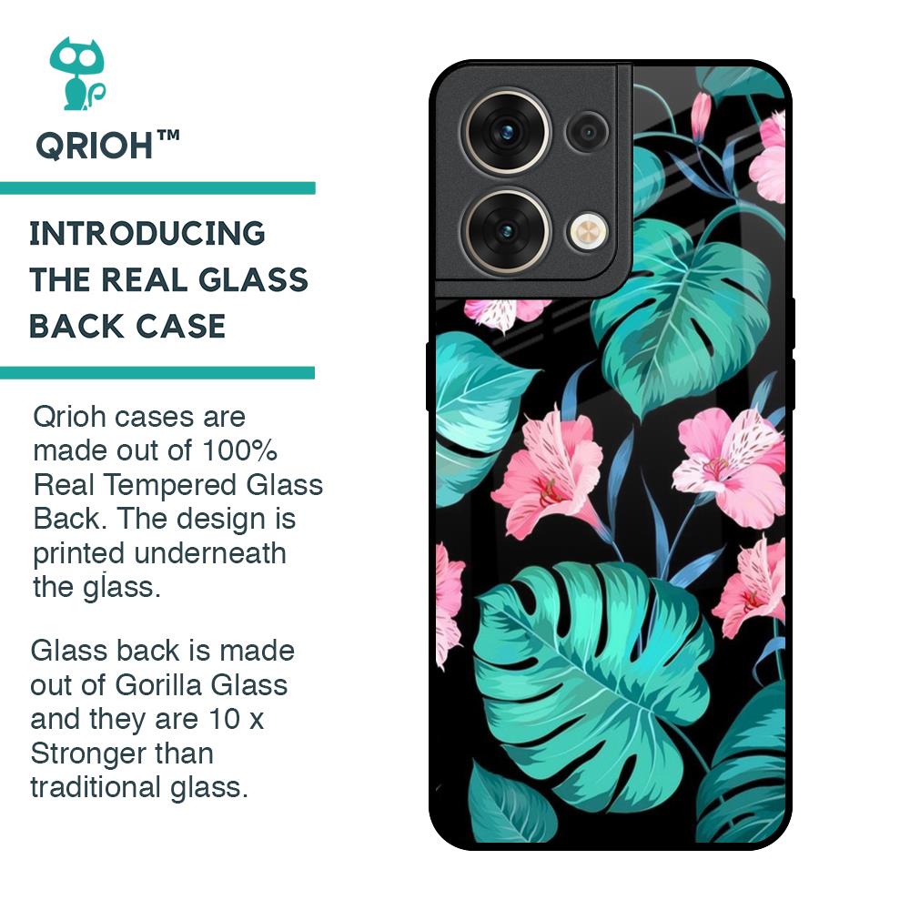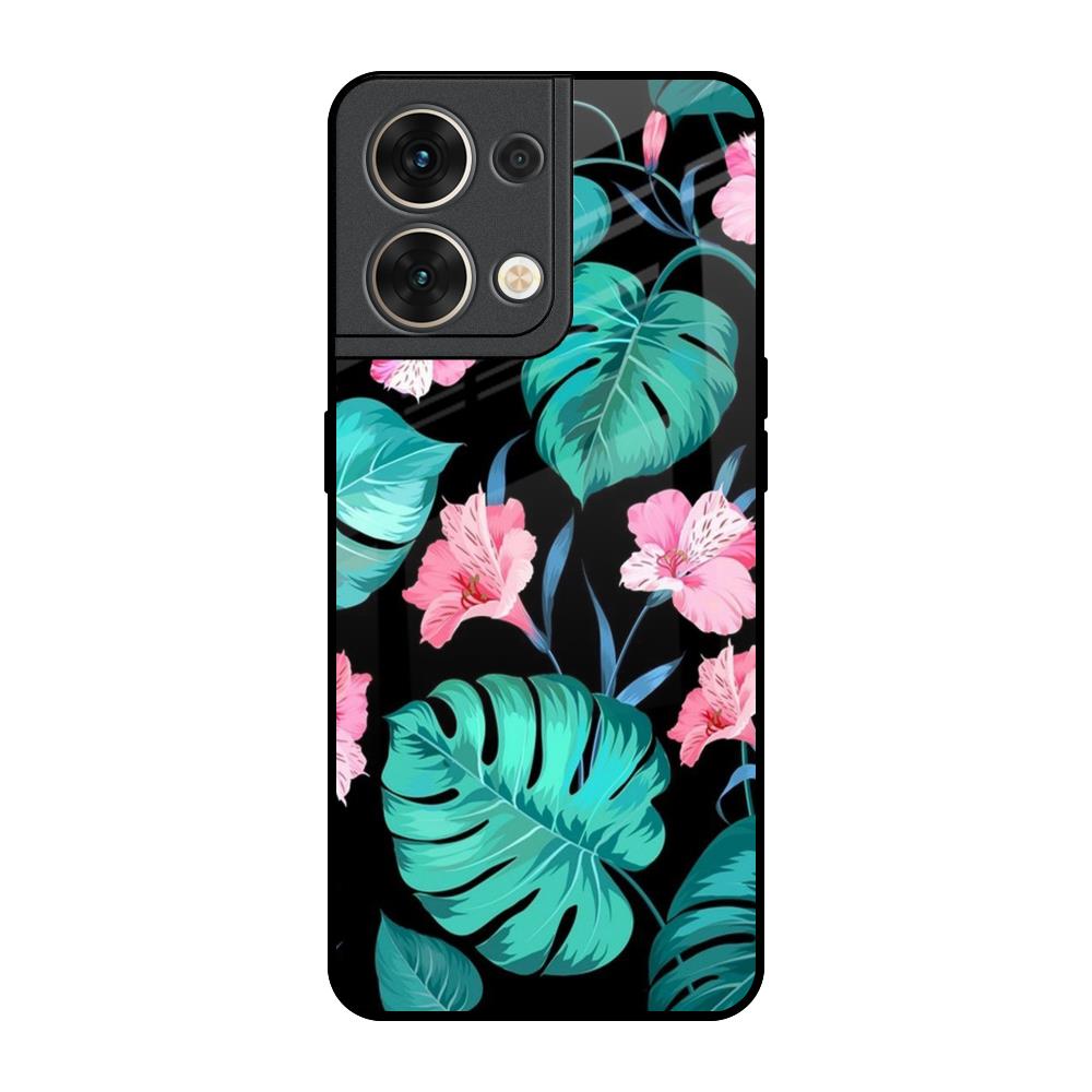 Tropical Leaves & Pink Flowers Glass Case for Oppo Reno8 5G