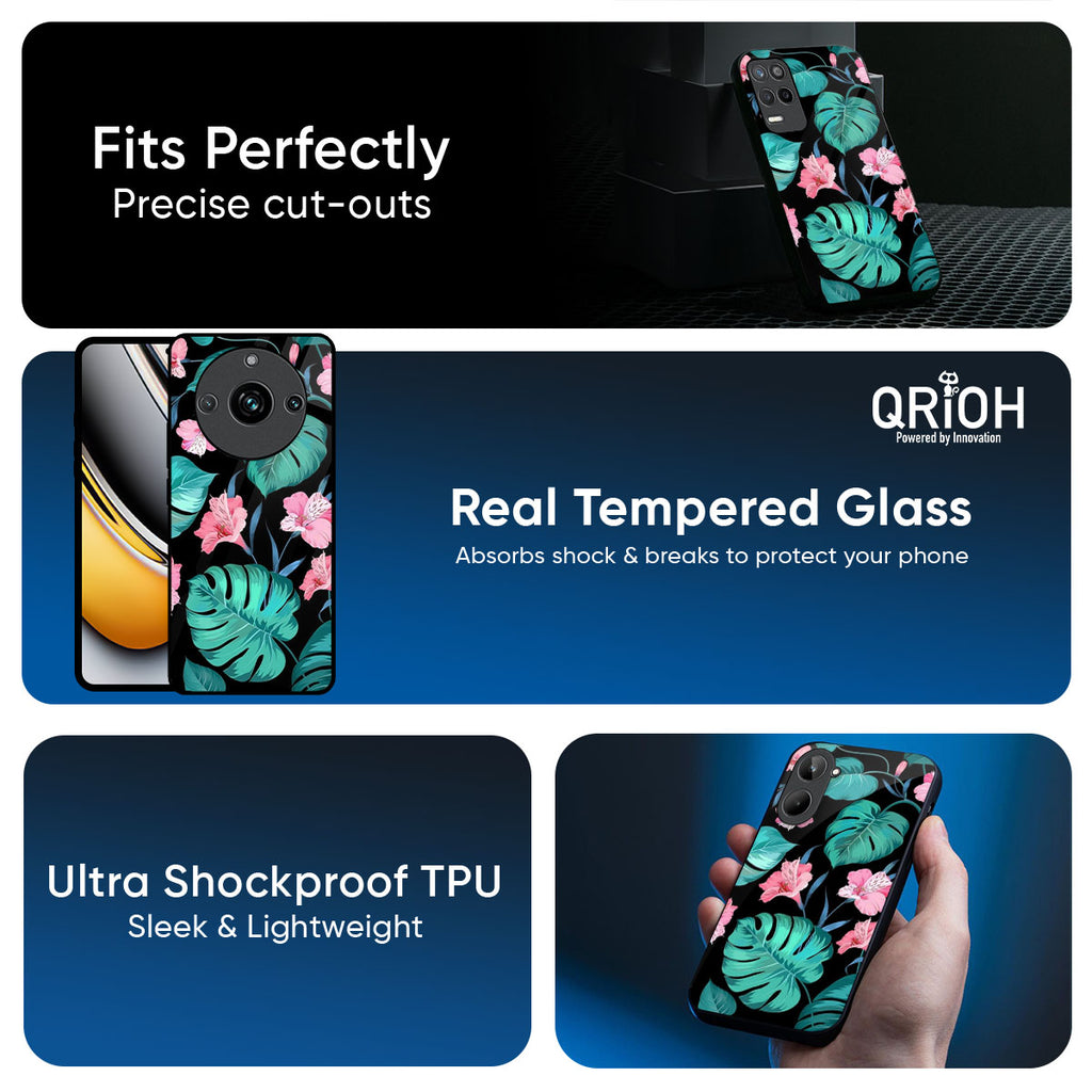 Tropical Leaves & Pink Flowers Glass Case for Realme 15T 5G