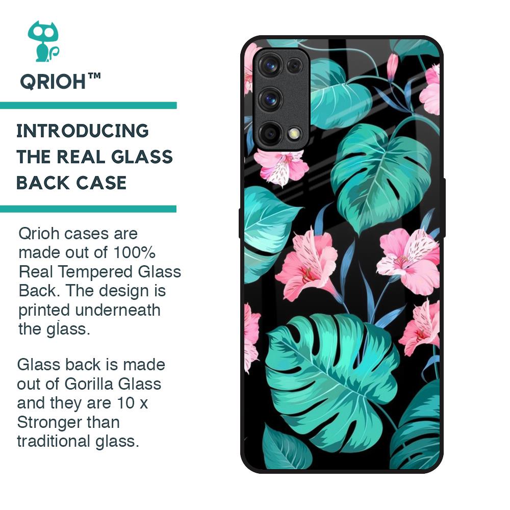 Tropical Leaves & Pink Flowers Glass Case for Realme X7 Pro