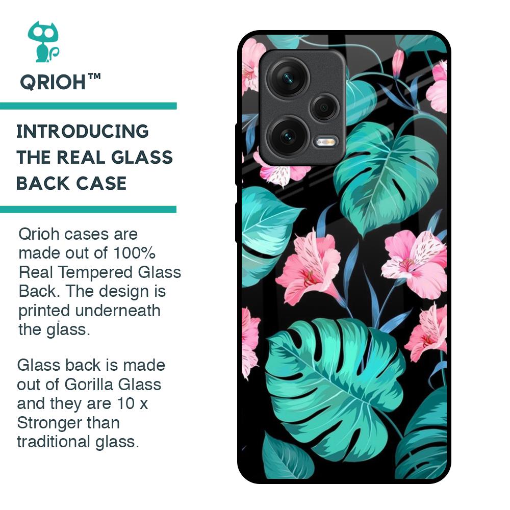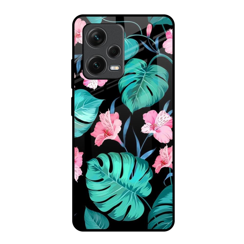 Tropical Leaves & Pink Flowers Glass Case for Redmi Note 12 Pro 5G