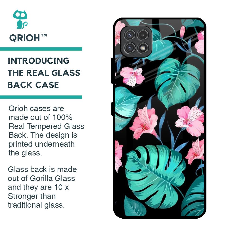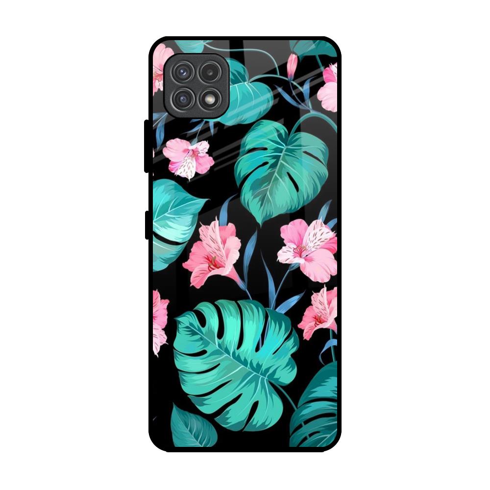 Tropical Leaves & Pink Flowers Glass Case for Samsung Galaxy A22 5G