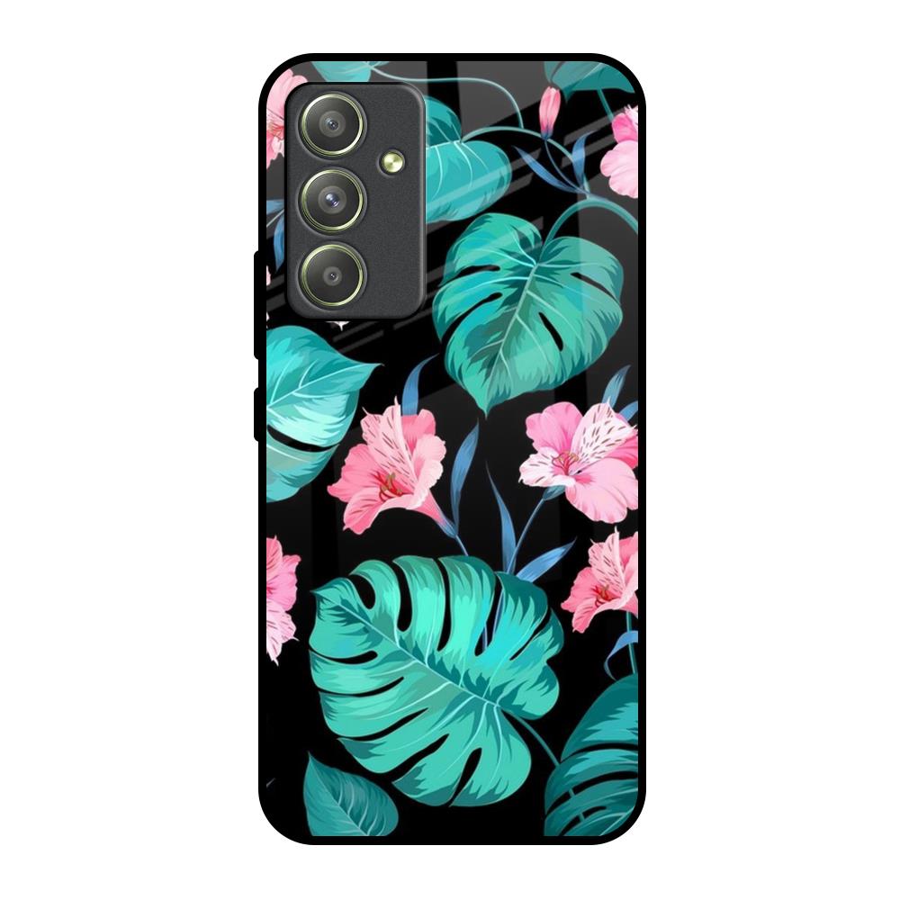 Tropical Leaves & Pink Flowers Glass Case for Samsung Galaxy A54 5G