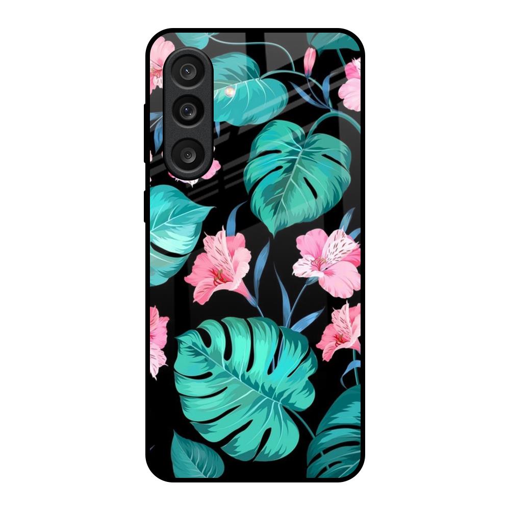 Tropical Leaves & Pink Flowers Glass Case for Samsung Galaxy F56 5G