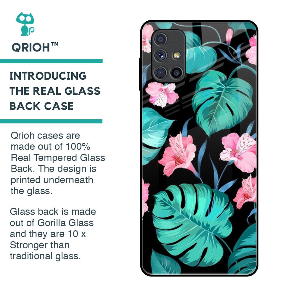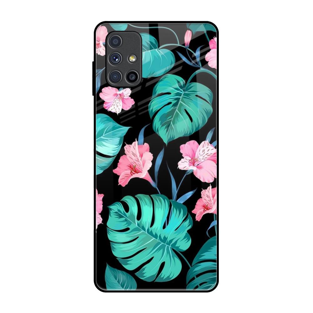 Tropical Leaves & Pink Flowers Glass Case for Samsung Galaxy M51