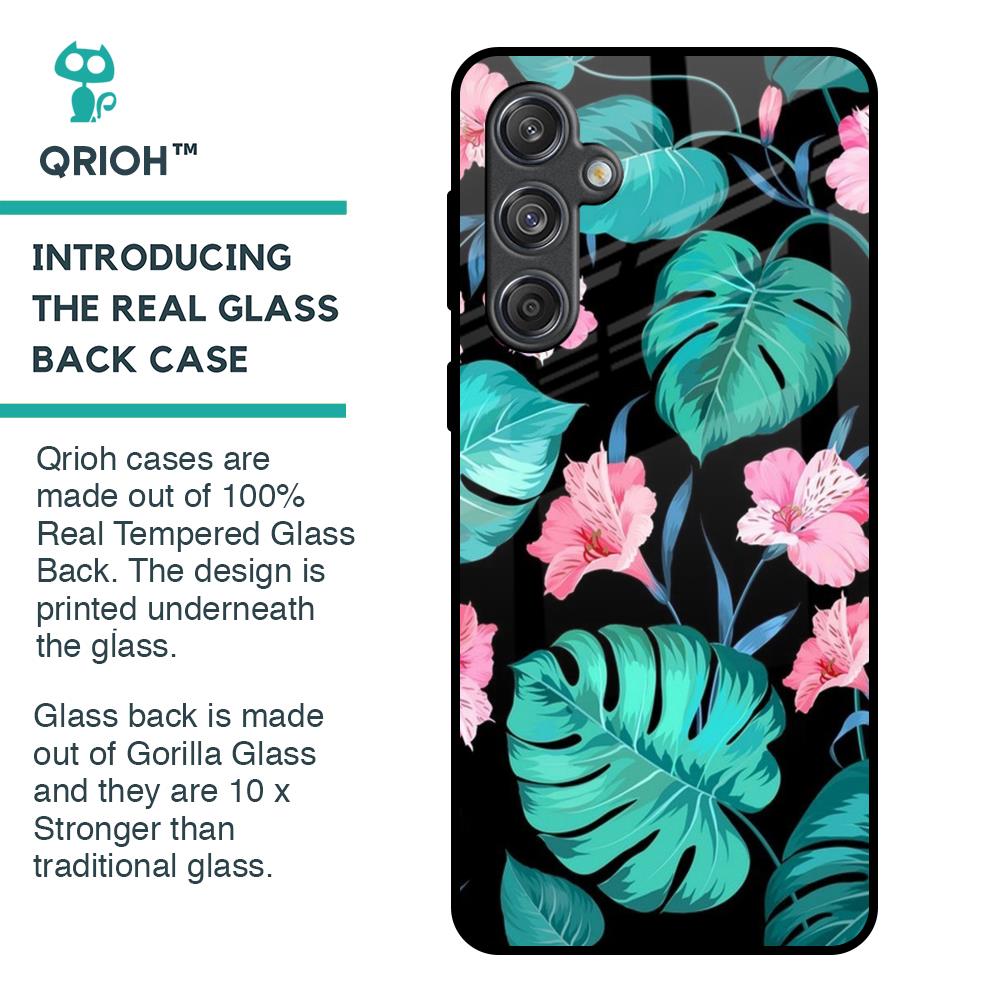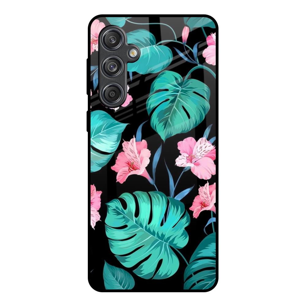 Tropical Leaves & Pink Flowers Glass Case for Samsung Galaxy M55 5G