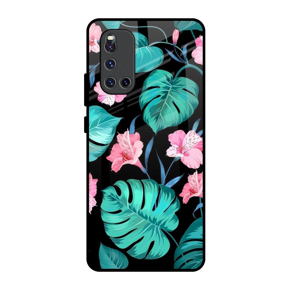 Tropical Leaves & Pink Flowers Glass Case for Vivo V19