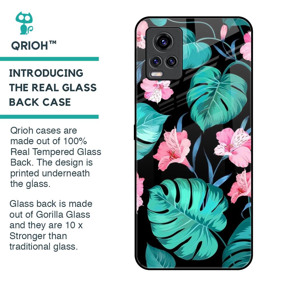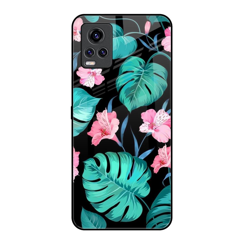 Tropical Leaves & Pink Flowers Glass Case for Vivo V20 Pro