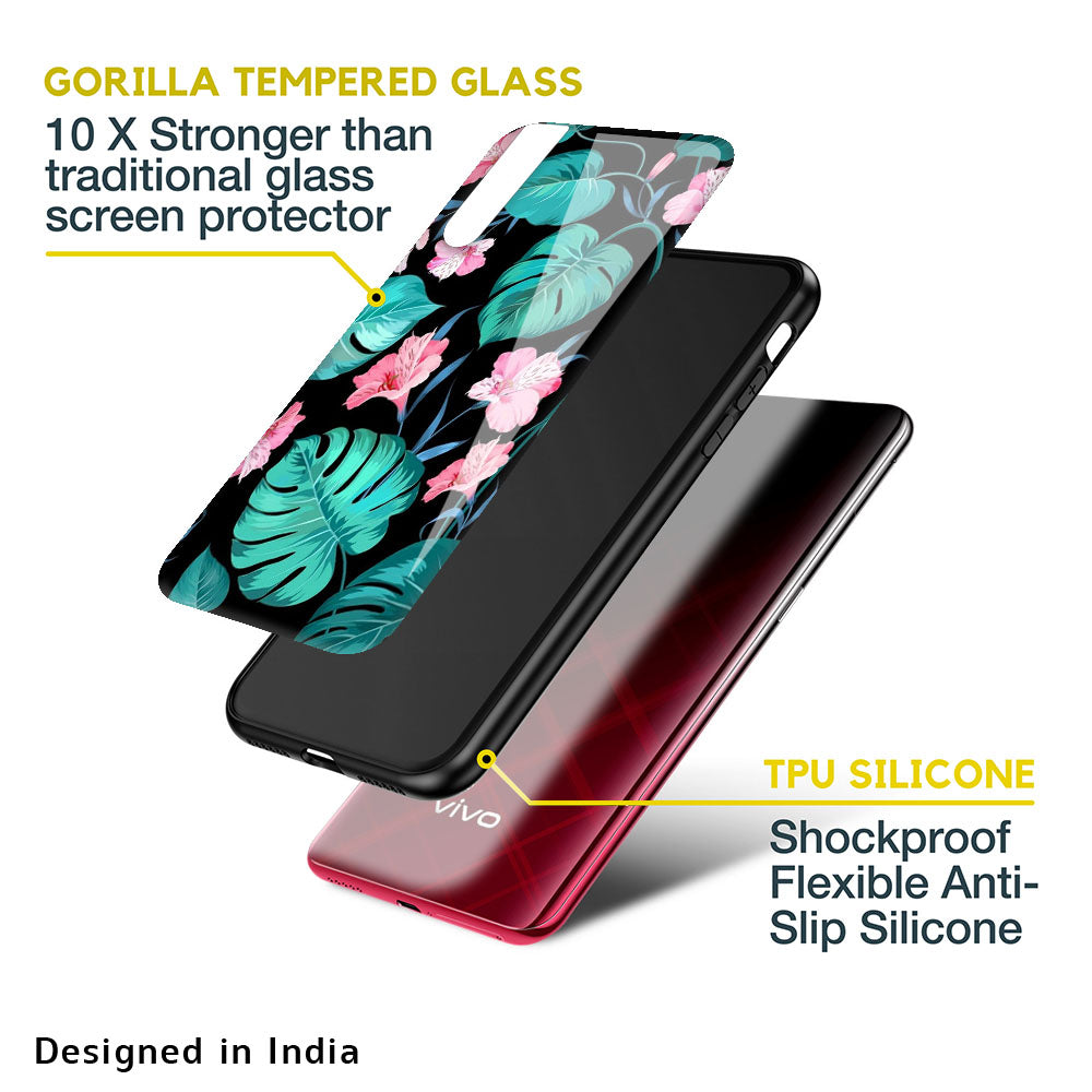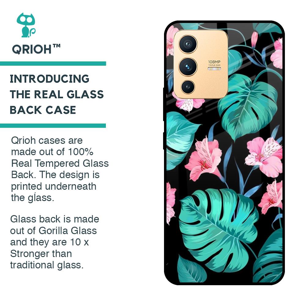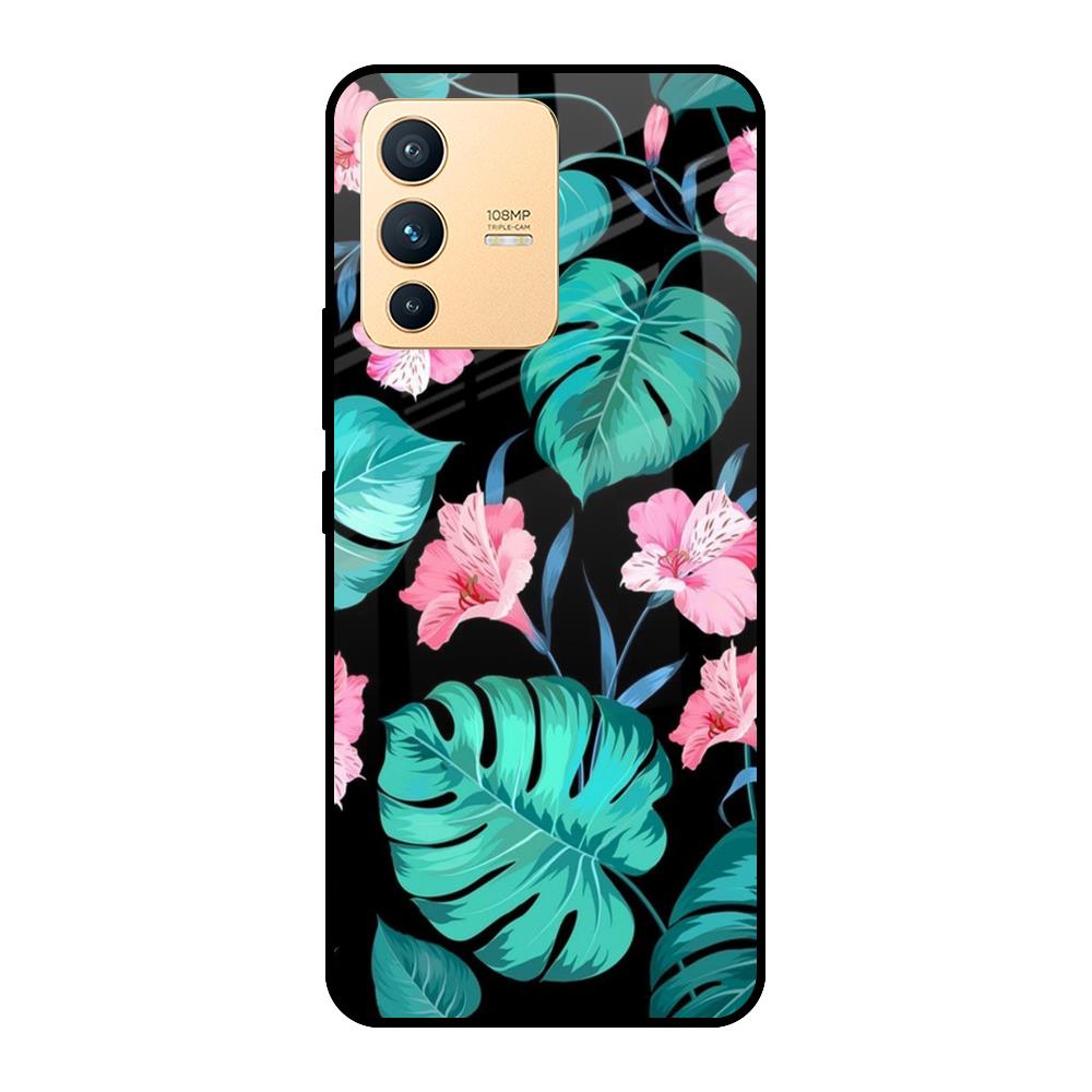 Tropical Leaves & Pink Flowers Glass case for Vivo V23 Pro 5G