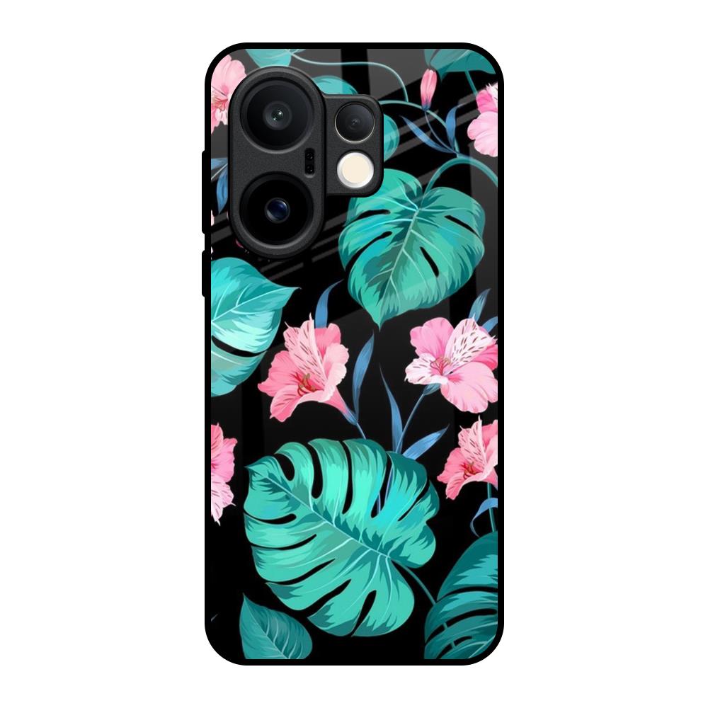 Tropical Leaves & Pink Flowers Glass Case for Vivo X200 FE 5G
