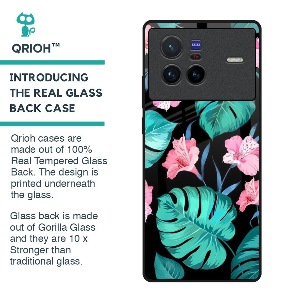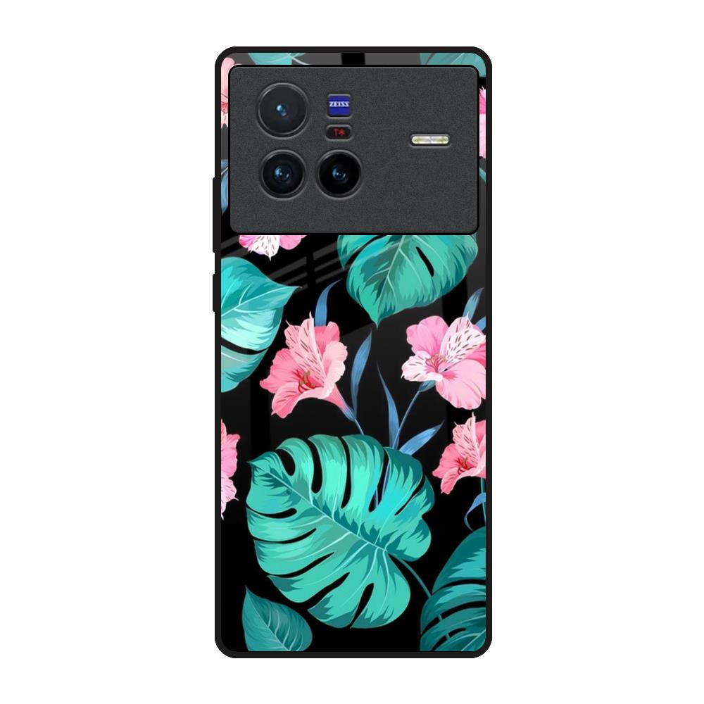 Tropical Leaves & Pink Flowers Glass Case for Vivo X80 5G