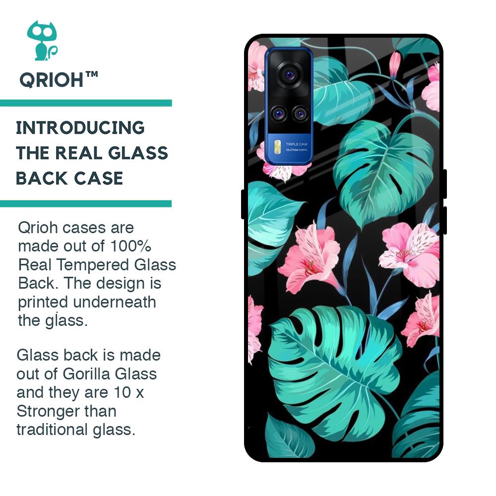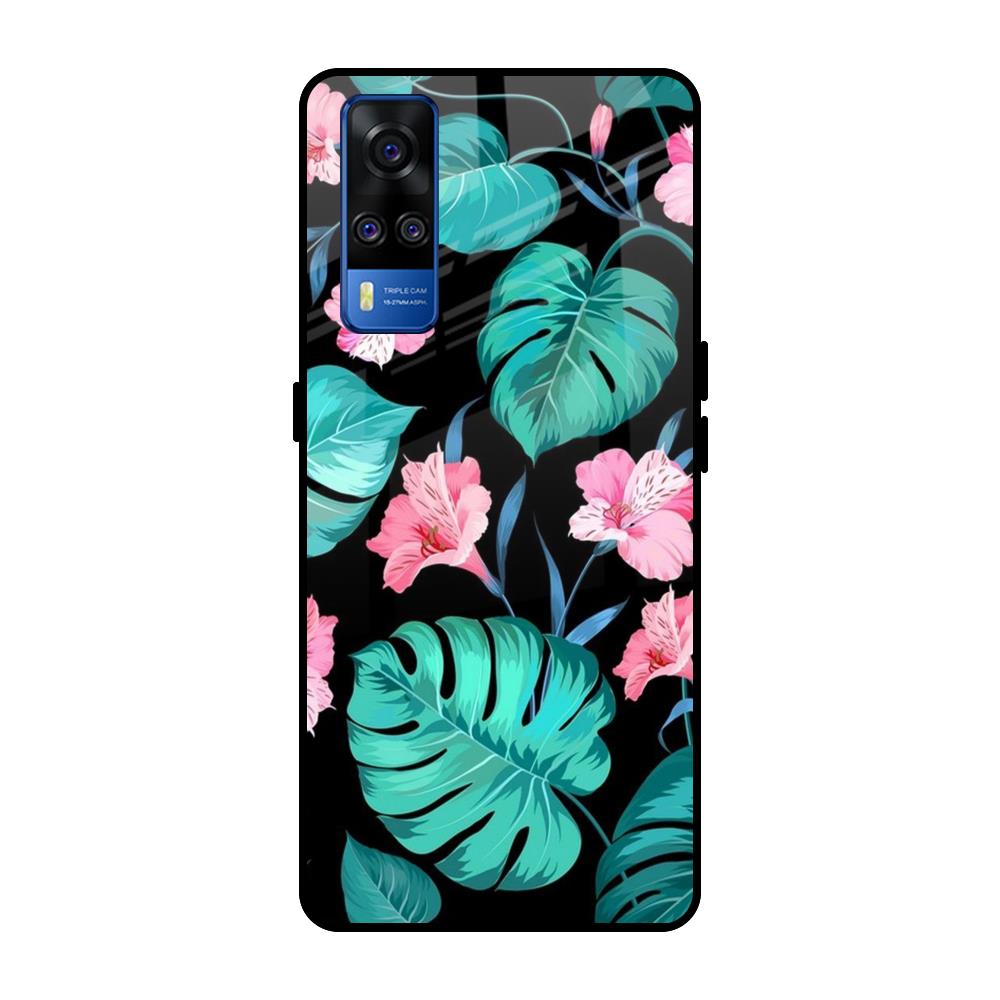 Tropical Leaves & Pink Flowers Glass case for Vivo Y51 2020