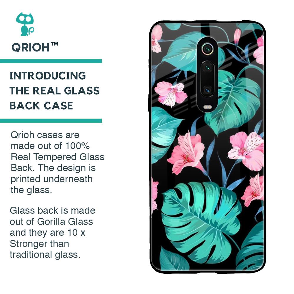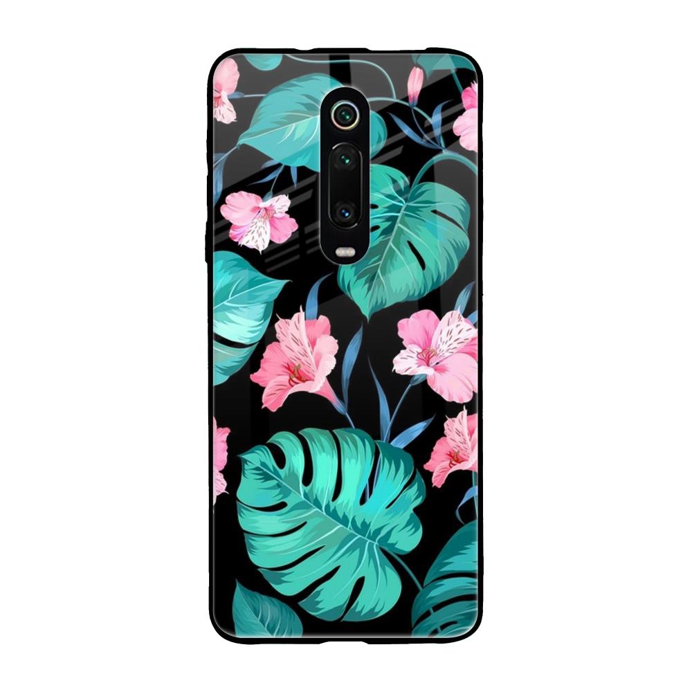 Tropical Leaves & Pink Flowers Glass case for Xiaomi Redmi K20
