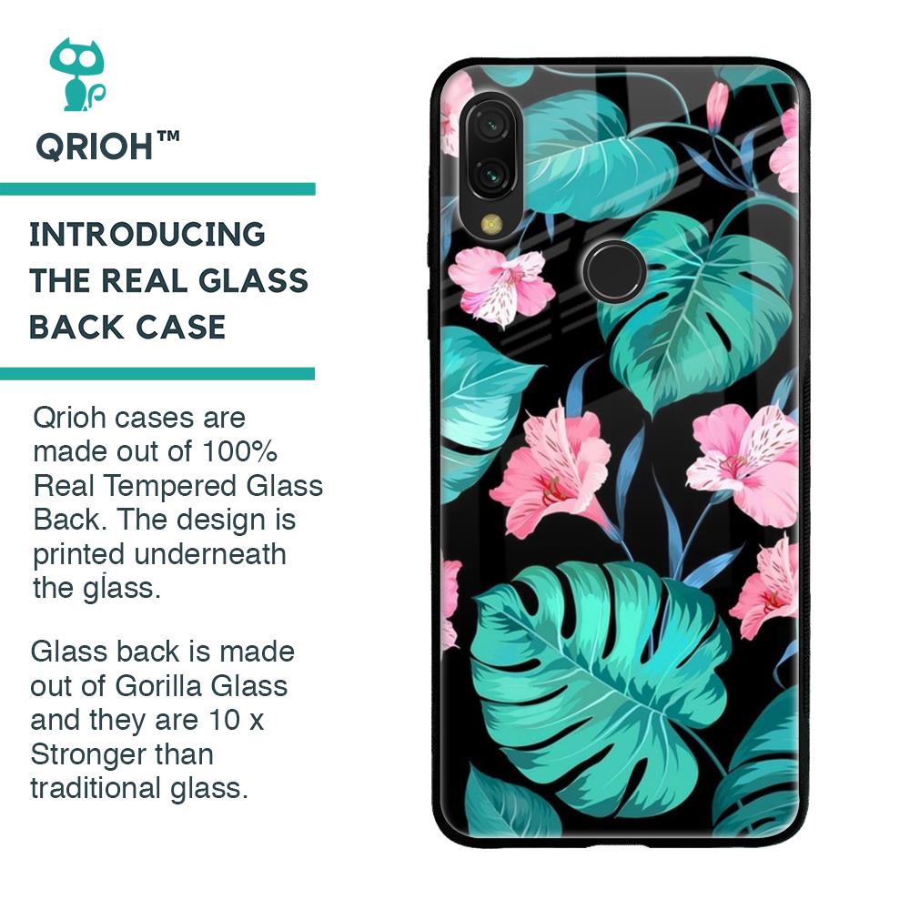 Tropical Leaves & Pink Flowers Glass case for Xiaomi Redmi Note 7