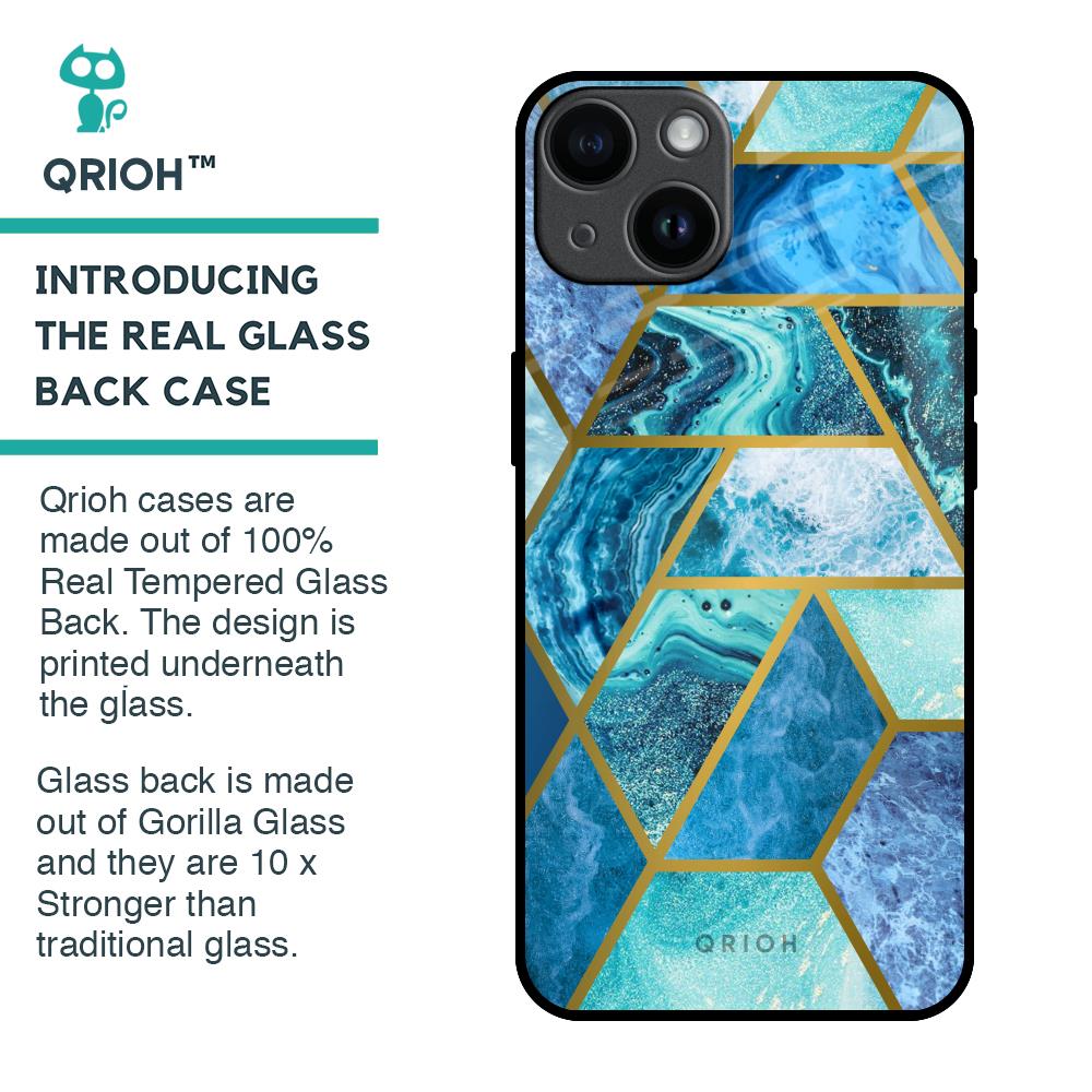 Turquoise Geometrical Marble Glass Case for iPhone 14