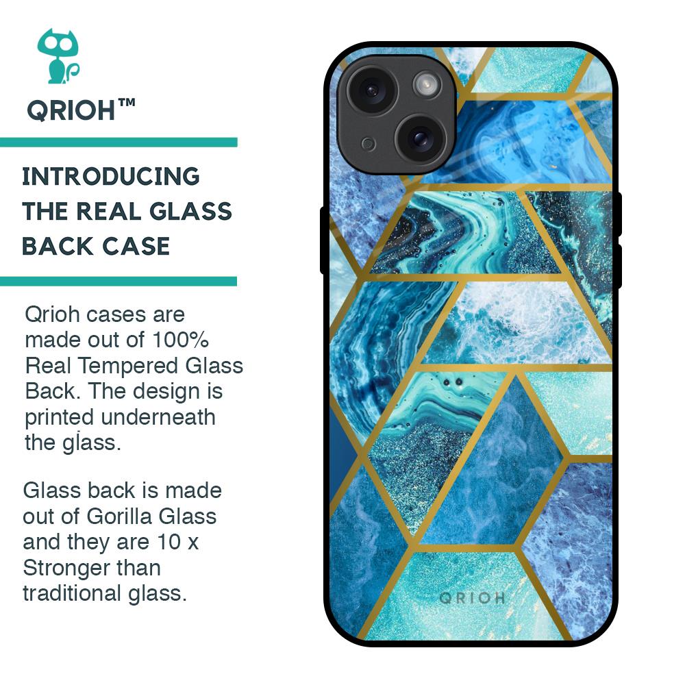 Turquoise Geometrical Marble Glass Case for iPhone 15 Plus