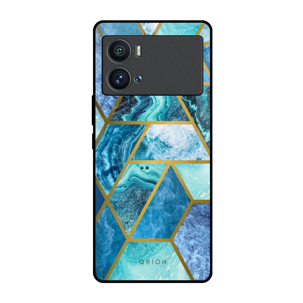 Turquoise Geometrical Marble Glass Case for iQOO 9 Pro