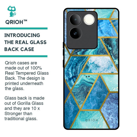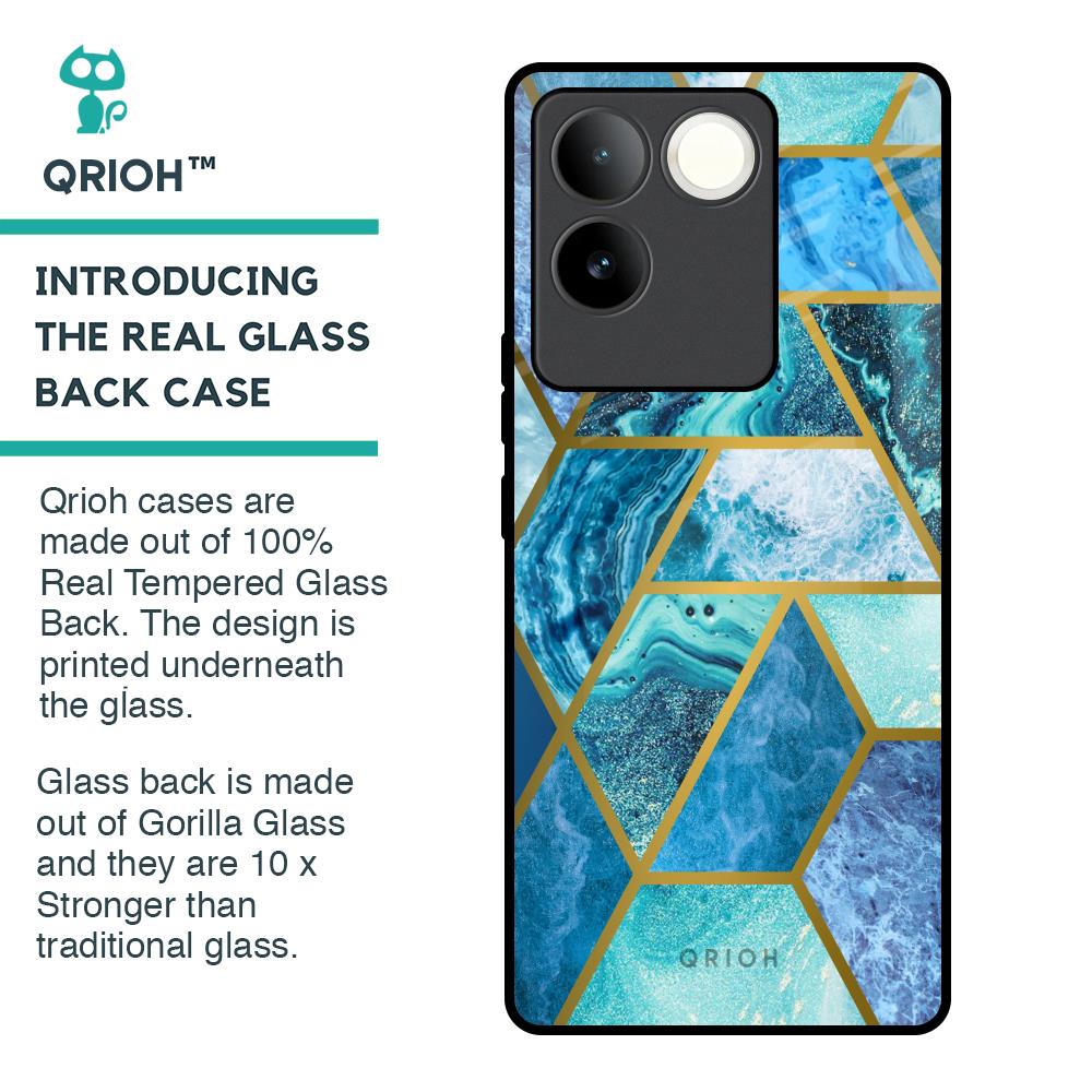 Turquoise Geometrical Marble Glass Case for iQOO Z7 Pro 5G